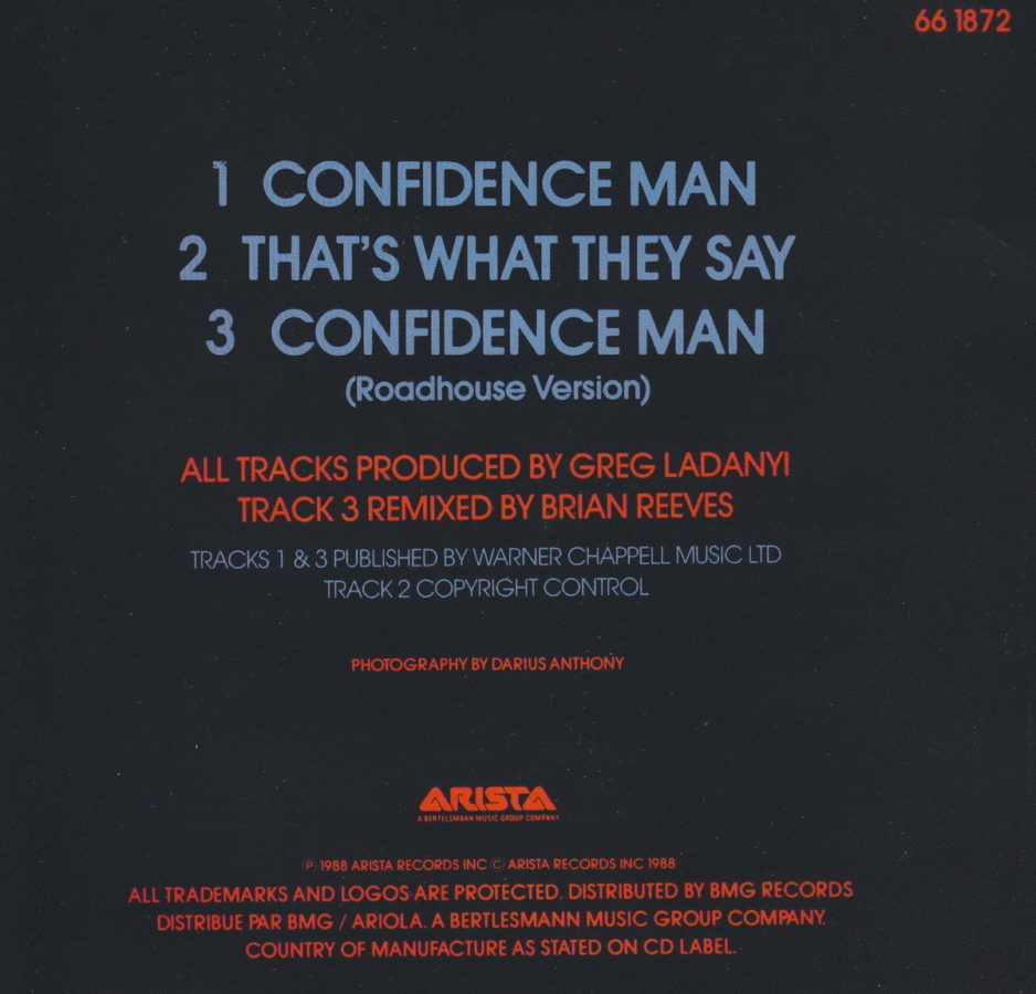 The John Hiatt penned 'Confidence Man', was the first single off of the Jeff Healey Band debut album, 'See The Light' and was also performed by the band in the film 'Road House'.
