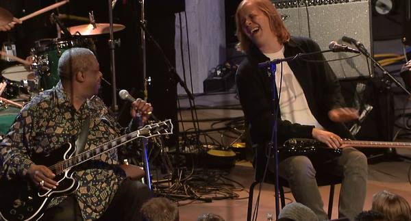 With the show set to start in just a few minutes, B.B. started calling on the members of his band, bringing them all in for an impromptu backstage jam with Jeff.
