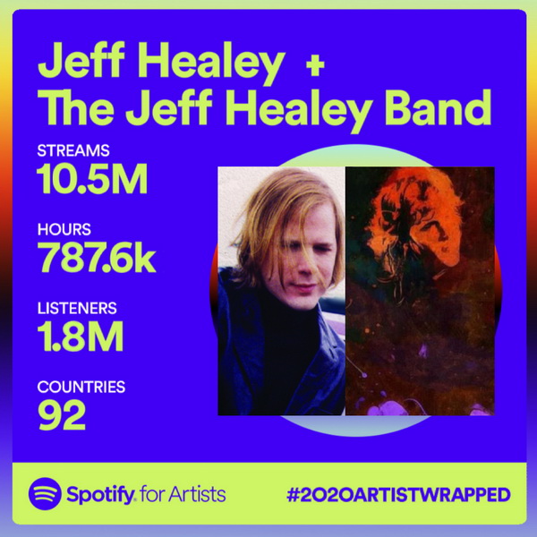 Your tremendous, ongoing support of Jeff’s memory and musical legacy has been truly overwhelming.  Just last month we had the great honour of cracking a quarter of a million followers on Facebook!   While over on Spotify, Jeff (solo & with the Jeff Healey Band) racked up over *10.5 million* streams in 2020 and there’s no sign of things slowing down.