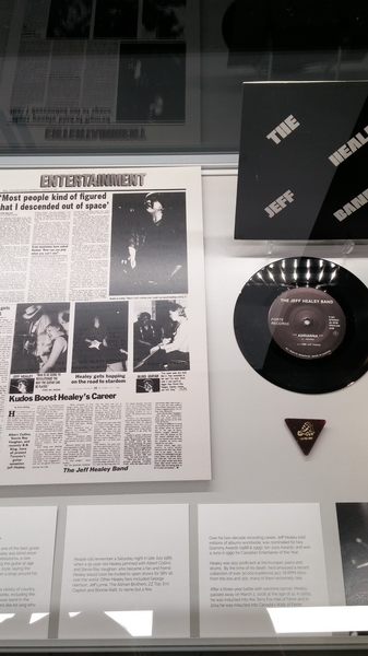 This rare record was sold off the stage in those early club days prior to Jeff’s first major label record deal. There was also an original Jeff Healey signature guitar pick and a repro of a newspaper article that was used in Jeff’s first press kit. It was from 1985 and had a photo of a 19 year old Jeff and Stevie Ray Vaughan jamming together for the first time, live at Albert’s Hall (along with Albert Collins!). It was a gig that cemented Jeff’s reputation as an extraordinary guitar slinger and helped kick start his professional career.
