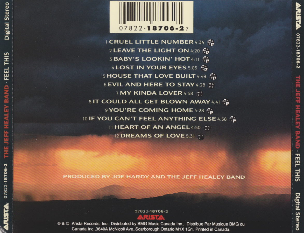 The Jeff Healey Band’s third album, Feel This saw them pushing the boundaries on their sound adding keyboards and back-up singers to their live lineup.