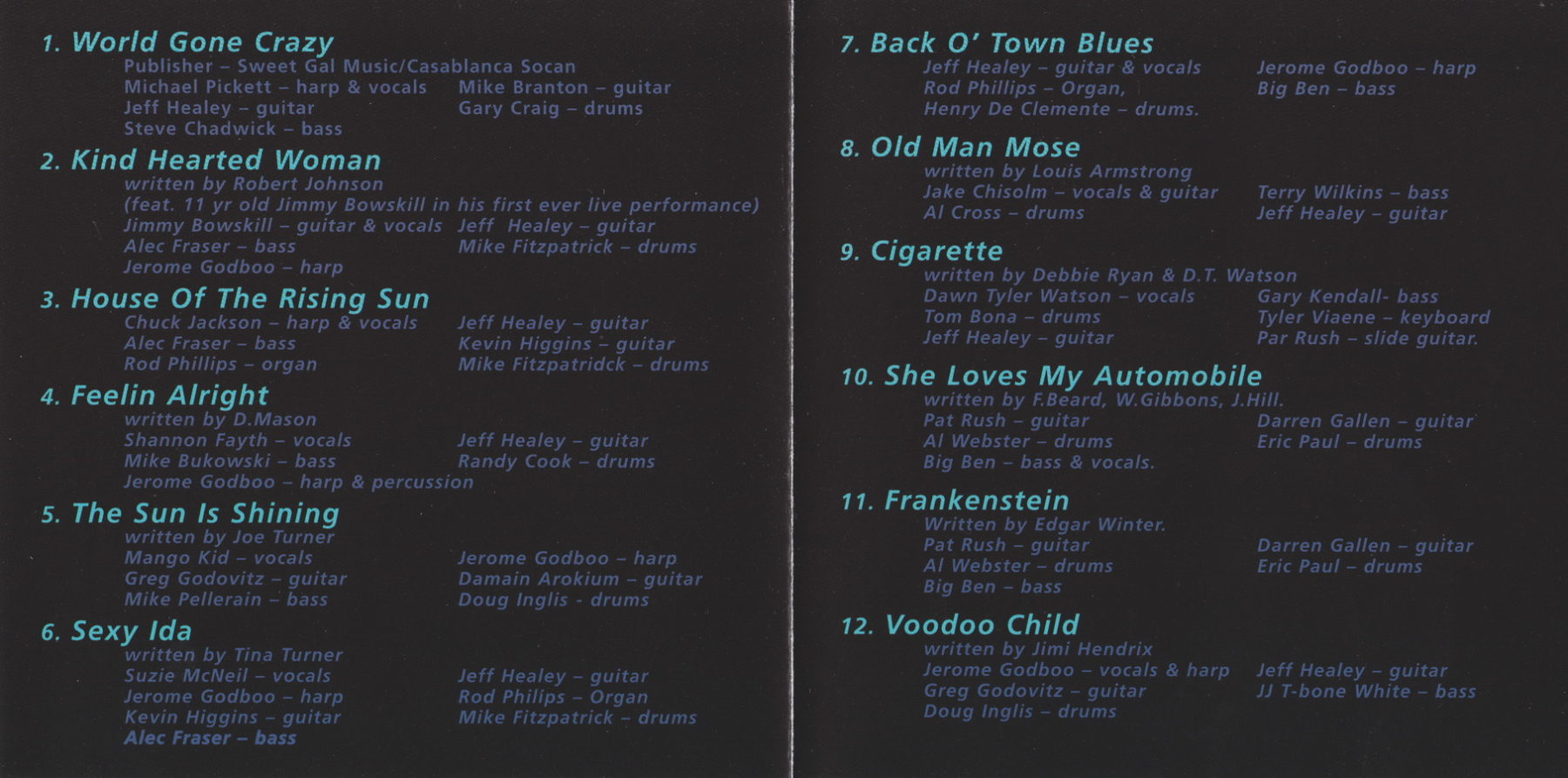 HENRY De CLEMENTE Drums, JEROME GODBOO Harp, JEFFHEALEY Guitar, ROD PHILLIPS Organ, Ben Richards Bass