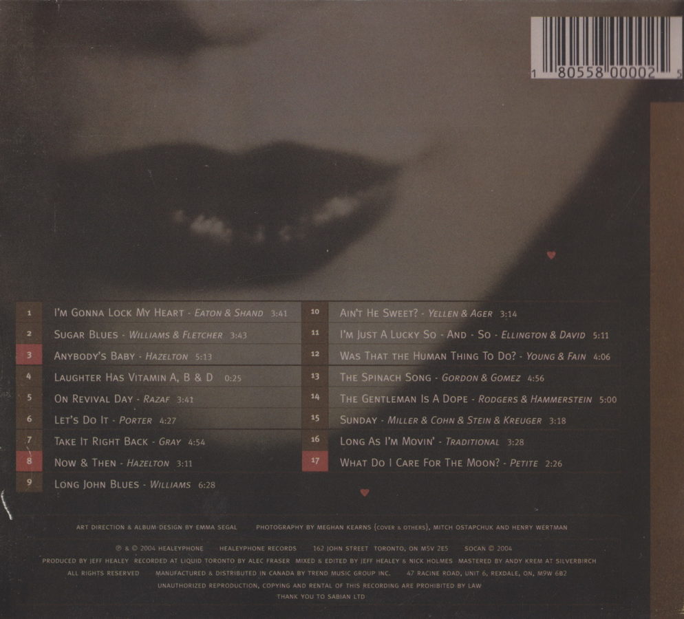 JESSE BARKSDALE Guitar rhythm, COLIN BRAY Bass, TERRA HAZELTON Vocals, JEFF HEALEY Guitar solo, REIDE KAISER Piano, CHRISTOPHER PLOCK Saxophone, GARY SCRIVEN Drums, ROSS WOOLRIDGE Clarinet