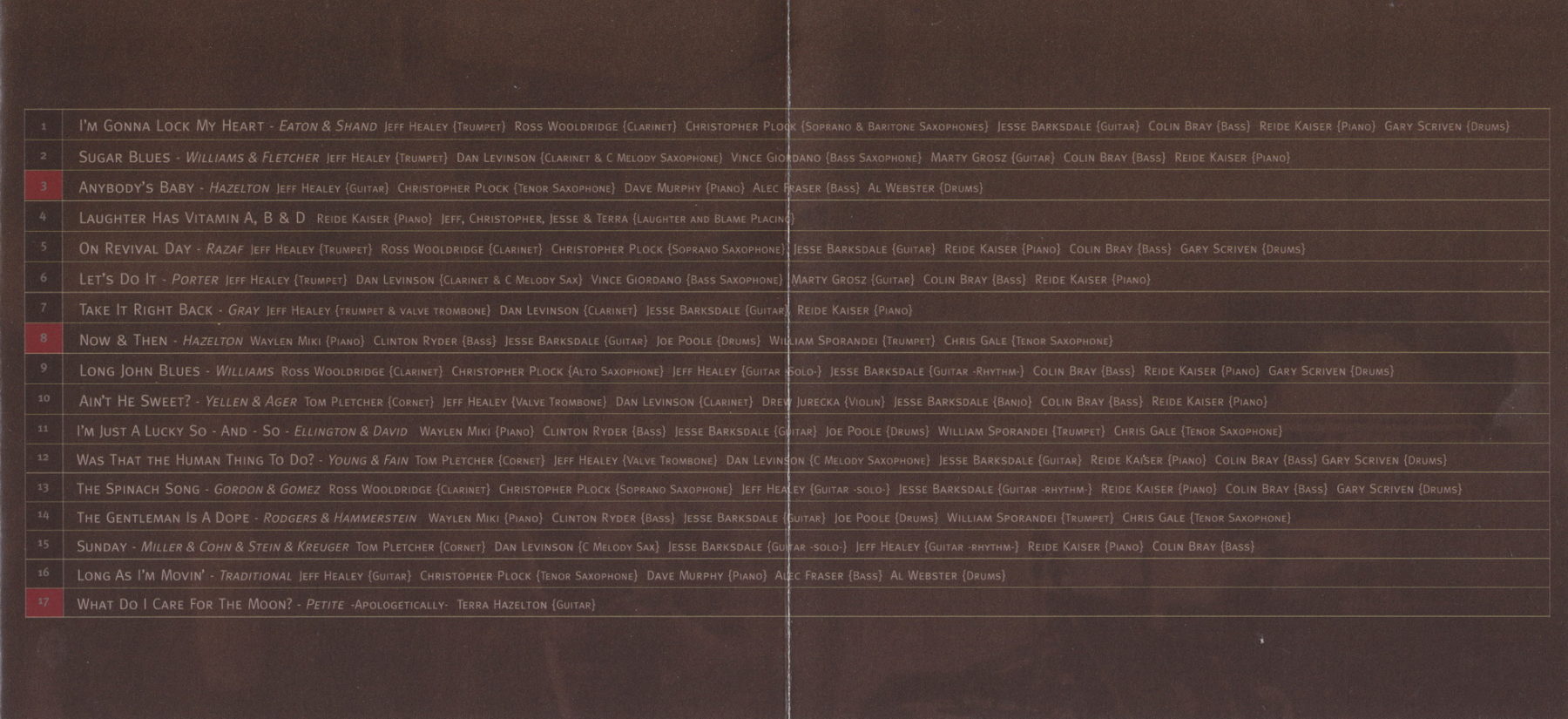 JESSE BARKSDALE Guitar, TERRA HAZELTON Vocals, JEFF HEALEY Trumpet/Trombone, REIDE KAISER Piano, DAN LEVINSON Clarinet